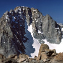 Peak: Conness Route: Harding Route Grade: IV 5.10 A2 Elevation: 12,590 ft. Date: Sept 1979 Partner(s): w/ Mark Whiton and Rainsford Rouner Notes: Summited as the sun set and spent a comfy night with food and sleeping bags followed by a mellow descent the next morning.