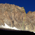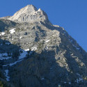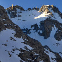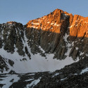 Peak: Haeckel Route: North Face / North Ridge Grade: Class 4 Elevation: 13,418 ft. Date: June 2012 Partner(s): solo Notes: One of the best routes I've done. The couloir approach is spring only but gives the route a true alpine flavor. The rock finish is really good. The quality excellent. Descended the west side of the peak which seems alot more obvious.