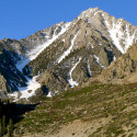 Peak: Mills Route: East Face gully Grade: Class 4, moderate snow Elevation: 13,451 ft. Date: May 2021 Partner(s): solo Notes: Why do I keep saying that springtime ascents are the preferred season to climb in the High Sierra? This route is a fine example of something that I would steer clear of in the dryer summer months. It also gave me a chance to descend to the north and thus do a long circuit around the region. Did the left hand gully. When the gully pinches off at its top, a short section of stout rock climbing to get out of the gully to the right made more sense as the squeeze chimney finish looked a bit more than I was willing to solo. Some melted out ground lead to a fine snowfield finish. The summit is a bit of a hike south towards Abbot.