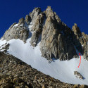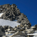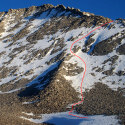 Peak: Tyndall Route: Northwest Face Grade: AI 2 Elevation: 14,019 ft. Date: May 2014 Partner(s): solo Notes: A good route taking into account that the idea was to stay on the snow as much as possible. Should have come down the same way. The west face was long, tedious and the talus was loose. Big winds arrived that afternoon.