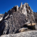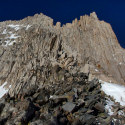 Peak: Lone Pine Peak Route: North Ridge Grade: III 5.7 Elevation: 12,944 ft. Date: June 2011 Partner(s): solo Notes: Big winter. Still a fair amount of snow on the route. Hardest part was the direct ridge as the Fin section was still snowy.
