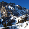 Peak: University Route: Northwest Face Grade: AI 2 Elevation: 13,589 ft. Date: May 2014 Partner(s): solo Notes: Spur of the moment change of plans. A good line on this side of the mountain. Not very steep but good situations none the less. Descended off the south side via University Pass. Moved right at mid height to add some mild mix rock and snow rather than stay in the wide snow fields.