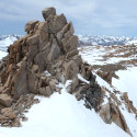 Peak: Starr Route: South Ridge Grade: Class 3 Elevation: 12,840 ft. Date: May 2021 Partner(s): solo Notes: Yet another route enhanced by an early season ascent. Wander up from Mono Pass to the saddle at the south end of the summit ridge. Then scramble all the way north over 1 false summit to the barely higher north summit. I should have descended the same way. West slope is steep choss.